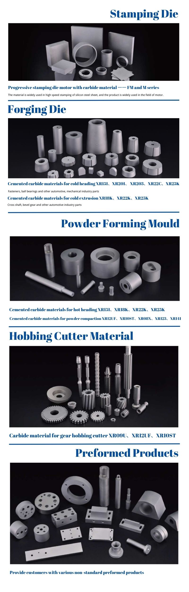 | Powder Forming Mould | Powder Forming be widely used in automotive, mold, aerospace, machinery industry, oil and mining fields. |